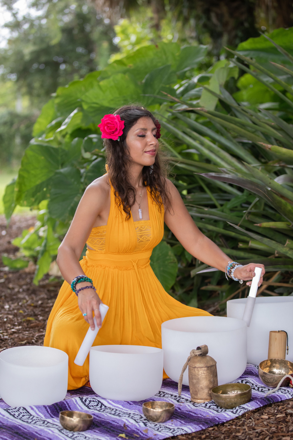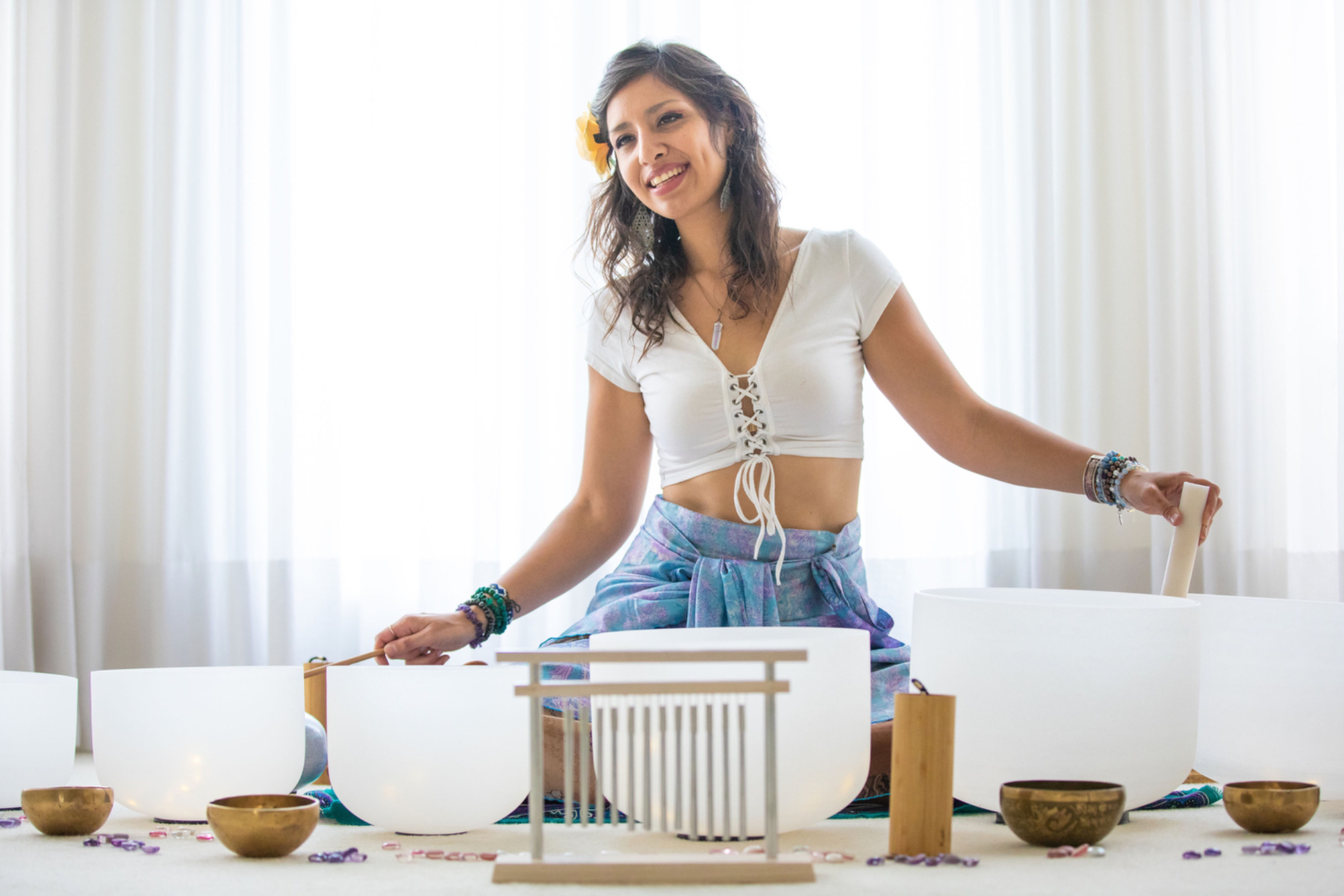 "I love crystal singing bowls, and wanted to add them to my yoga practice, but I was scared to invest in them, because I don't have any musical background. I looked at so many websites, and realized that there were so many options. And when I saw the price tag of the bowl sets I thought I wanted, I decided I needed to first get some expert guidance. Thank goodness for having Zooey as my mentor. She taught me The Harmonic Blueprint method, and now, I have exactly the number of bowls I need for my yoga & sound practice, and they sound so beautiful and so "me." What a gift and a joy it is to play them!"